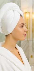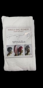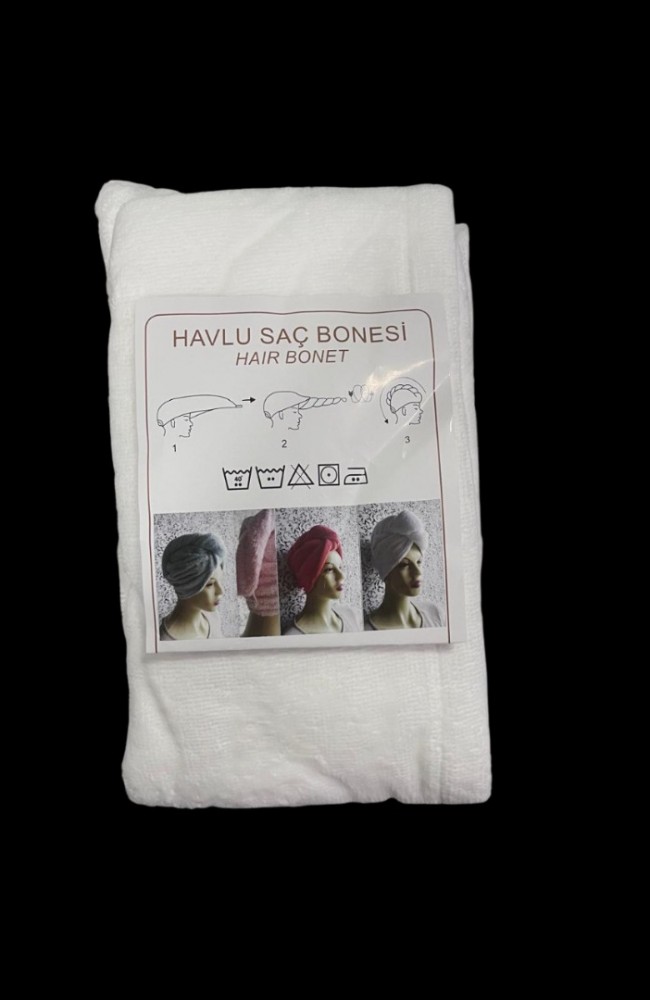 Toptan %100 Pamuk Düğmeli Lüx Havlu Saç Bonesi Beyaz