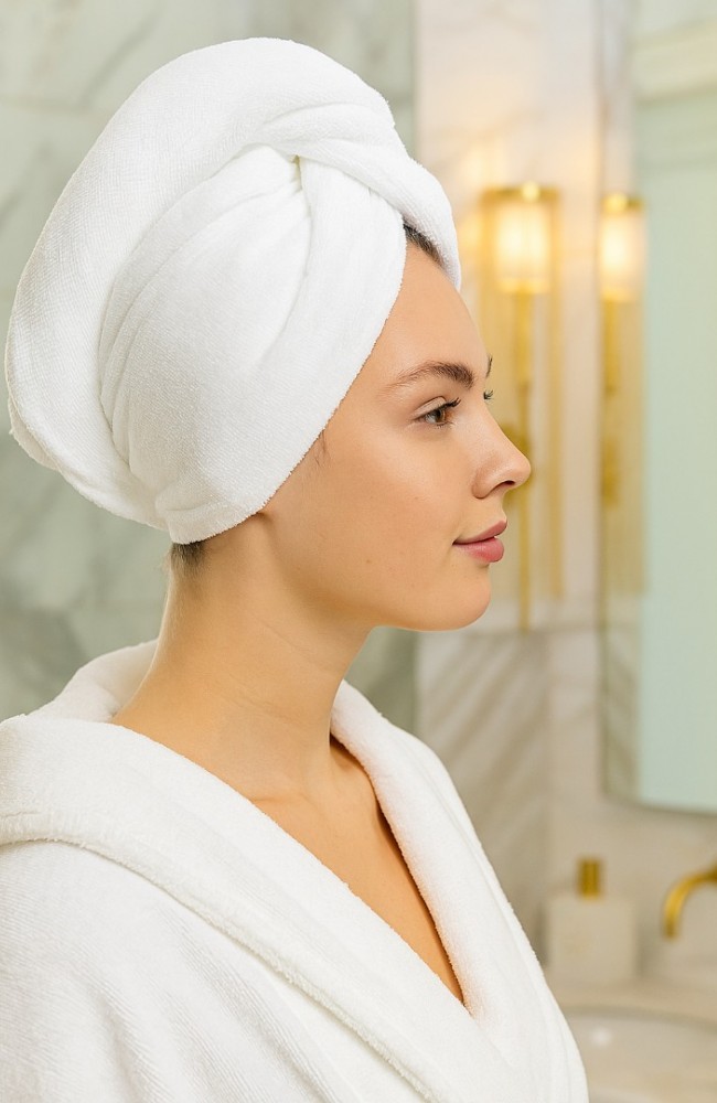 - %100 pamuk materyalden üretilmiş, cildinize nazik dokunuşuyla konfor sunar.; - Düğme detayı sayesinde pratik kullanım imkanı sağlar; kolayca takıp çıkarabilirsiniz.; - 40°C'de yıkama önerisiyle uzun ömürlü kullanım vaat eder.; - Tekil ürün olarak sunulur, ihtiyacınıza göre ideal boyutta bir seçenek oluşturur.; - Boyut ve ebatları ile farklı saç tiplerine uyum sağlayacak şekilde tasarlanmıştır.; - Pamuklu yapısı sayesinde suyu hızla emer ve hızlı kuruma özelliği gösterir.; - Saç havlusu tipindeki bu ürün, banyo sonrası rahatlıkla kullanabileceğiniz bir aksesuardır.; - Sade ve şık görünümüyle düz deseni, her türlü banyo dekorasyonuna kolayca uyum sağlar.; - Türkiye'de üretilmiş olmasıyla yerel kaynakların desteklenmesine katkıda bulunur.