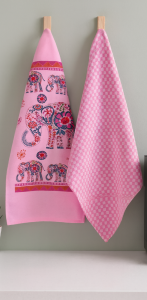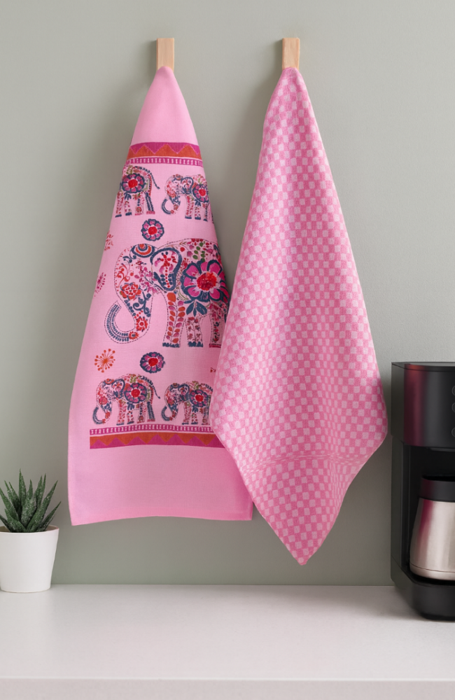 2'li Mutfak Peçetesi %100 Pamuk Dokuma Desenli ve Baskılı 40 x 60 Pembe Havlu Seti