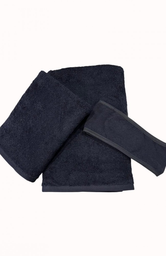 Toptan 3'lü Doğal Pamuk 1 Adet 70x140cm Banyo Havlusu 1 Adet 50x90cm Saç Havlusu-Bone Siyah Havlu Seti