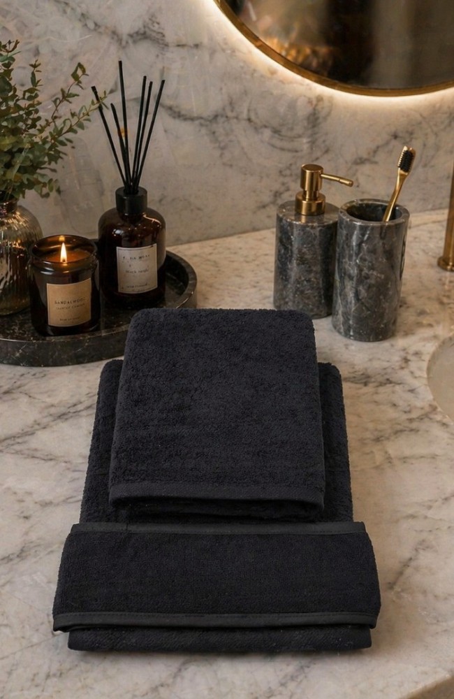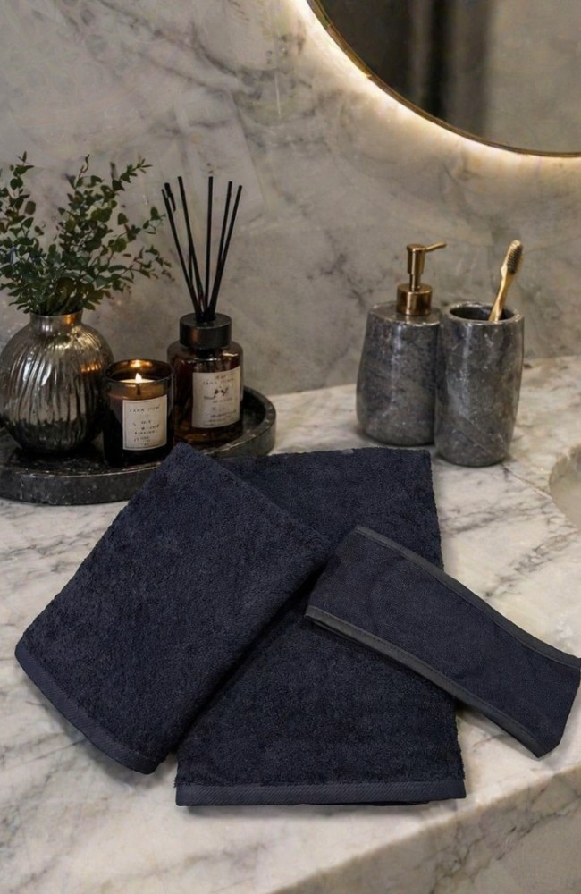 “Zarafetin ve konforun buluştuğu 3’lü havlu seti ile banyonuzda sade bir şıklık yaratın.; %100 pamuk dokusuyla cildinizi yumuşacık sarar, yüksek emiciliğiyle konforu artırır.; Hem günlük kullanım hem de misafirleriniz için şık bir tercih.; Ürün Özellikleri: Renk: Siyah — her banyoya uyum sağlayan sade ve zarif bir görünüm sunar.; Kumaş: %100 pamuk veya yüksek kaliteli pamuk karışımı.; Desen: Havlunun kenar kısmında dokuma detaylı, şık ve sade desen bulunur.; Yumuşaklık: İlk dokunuşta bile hissedilen yoğun yumuşaklık.; , Emicilik: Yüksek su emici özelliği sayesinde hızlı kuruma sağlar.; Dayanıklılık: Yıkamaya karşı formunu ve rengini uzun süre korur.; Kullanım Alanları: Ev banyosu için şık ve konforlu bir kullanım sunar.; Otel, spa, hamam, kuaför gibi profesyonel alanlarda da tercih edilebilir.; Misafir havlusu olarak da kullanılabilir.; Yeni evli çiftler veya çeyizlik setler için idealdir.;
