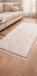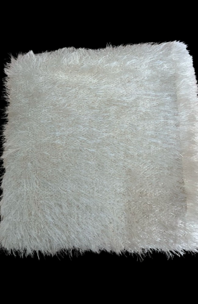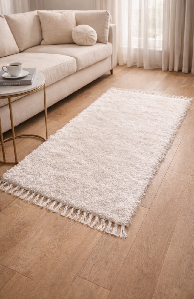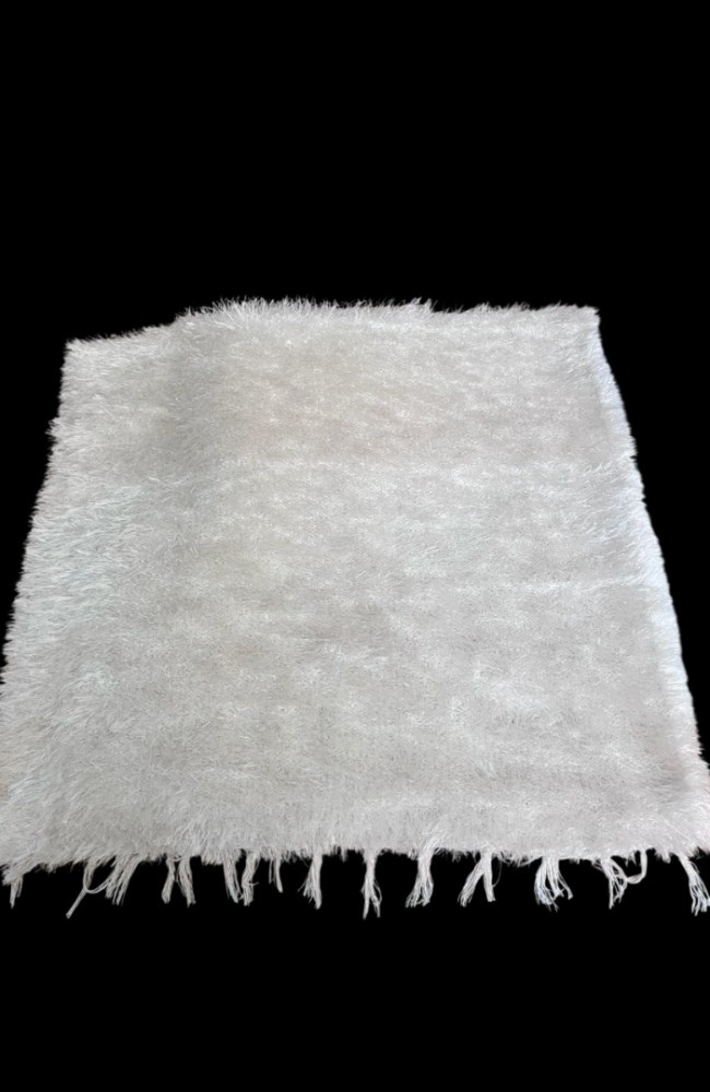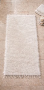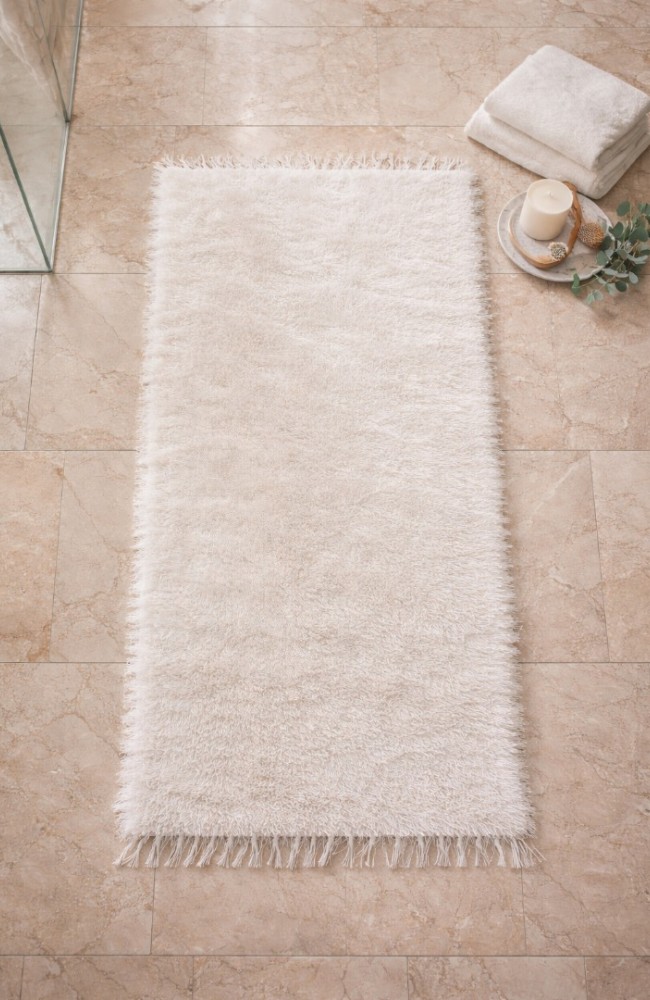 El Dokuma Bambu Viskon Yumuşak İplik 70x140 cm Peluş Halı Paspas Beyaz
