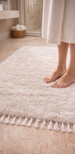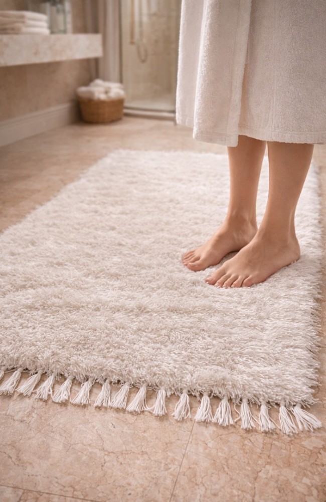 Toptan El Dokuma Bambu Viskon Yumuşak İplik 70x140 cm Peluş Halı Paspas Beyaz