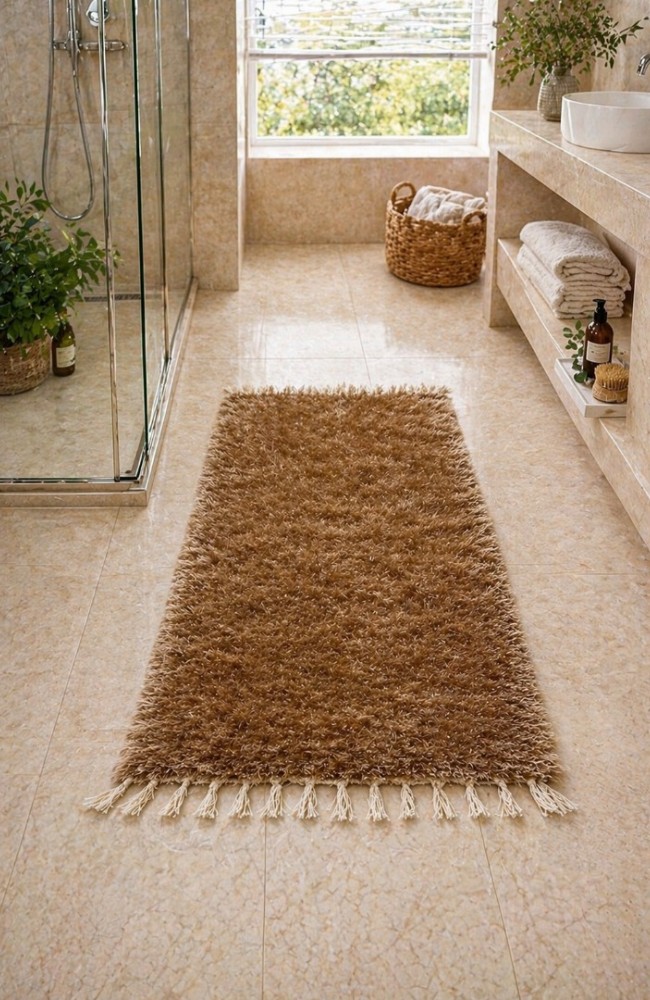 Toptan El Dokuma Bambu Viskon Yumuşak İplik 70x140 cm Peluş Halı Paspas Sütlü Kahve